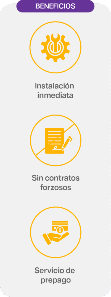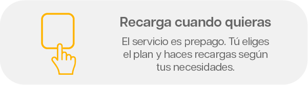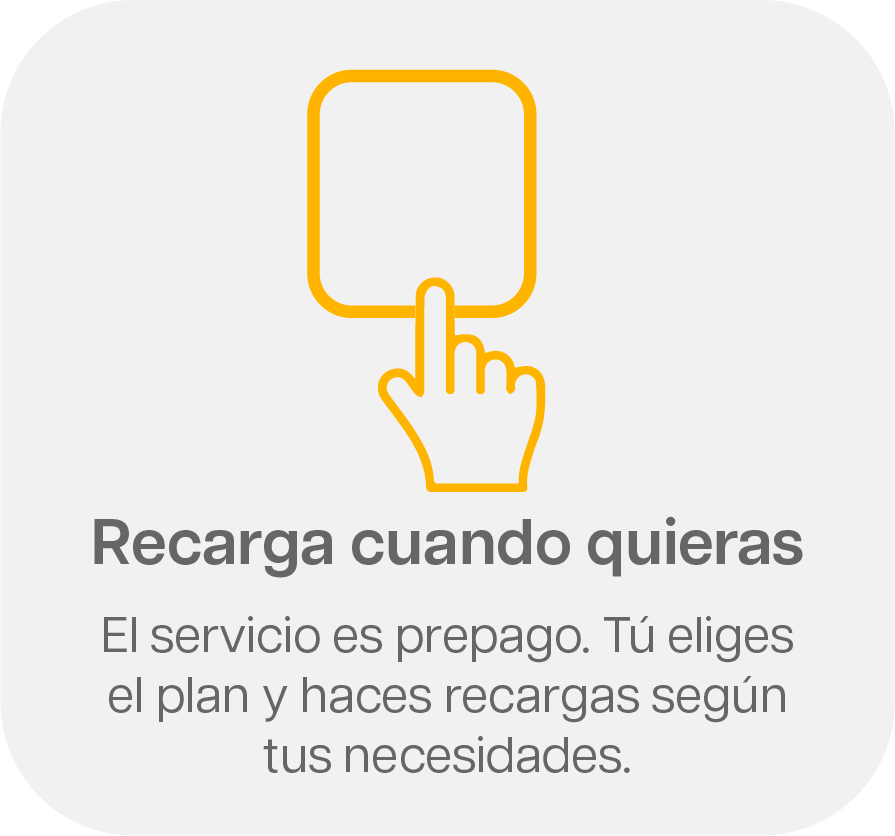 Tú controlas tu consumo y recargas, con la cobertura y velocidad que necesitas para trabajar, estudiar o disfrutar sin interrupciones,